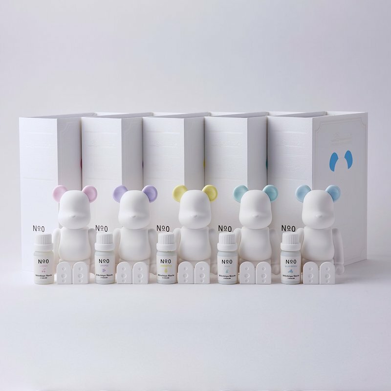 日本BE@RBRICK庫博力克香氛熊馬卡龍彩色耳朵版(馬卡龍藍-藍莓味香氛)