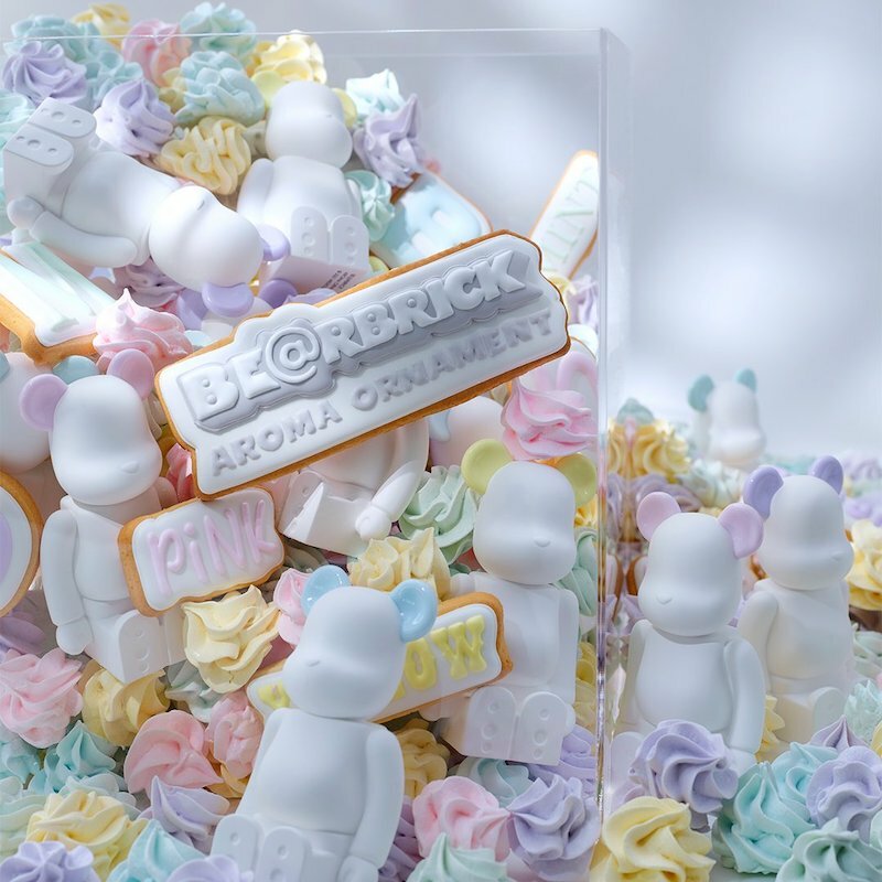 日本BE@RBRICK庫博力克香氛熊馬卡龍彩色耳朵版(馬卡龍黃-鳳梨味香氛)