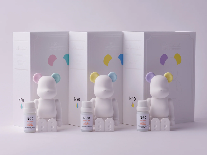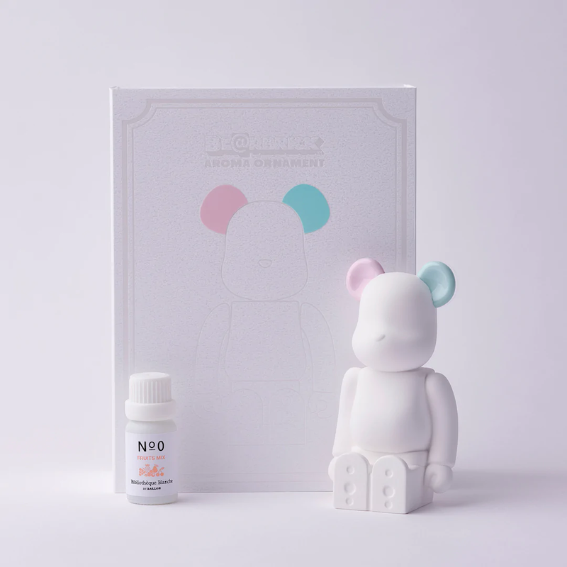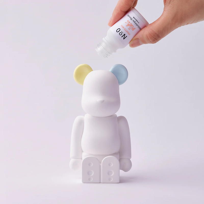 日本BE@RBRICK庫博力克香氛熊馬卡龍雙色耳朵版(黃色藍色-水果派對香氛)