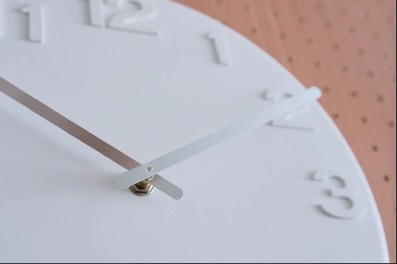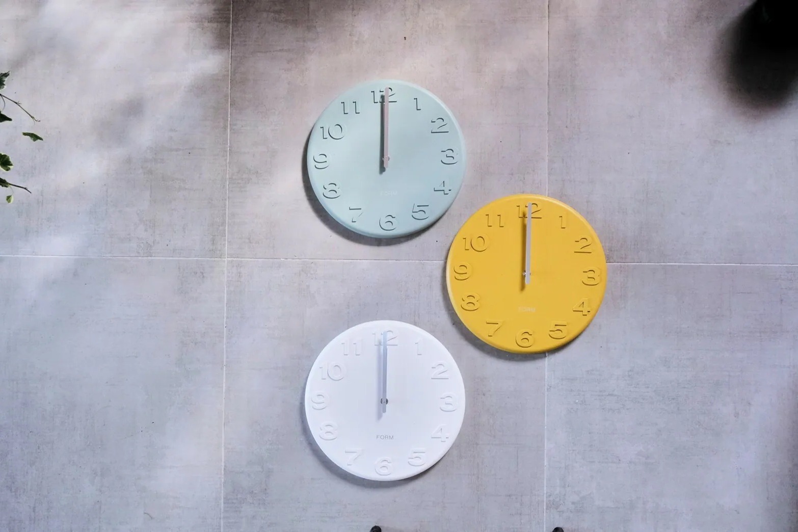 時鐘以一體成型的單一鐘盤搭配立體浮凸數字,除了提升時間辨識性,更讓整體視覺感受更為舒適恬靜,也特別加入莫蘭迪色系,為空間注入豐富色彩,迎來新氣象。