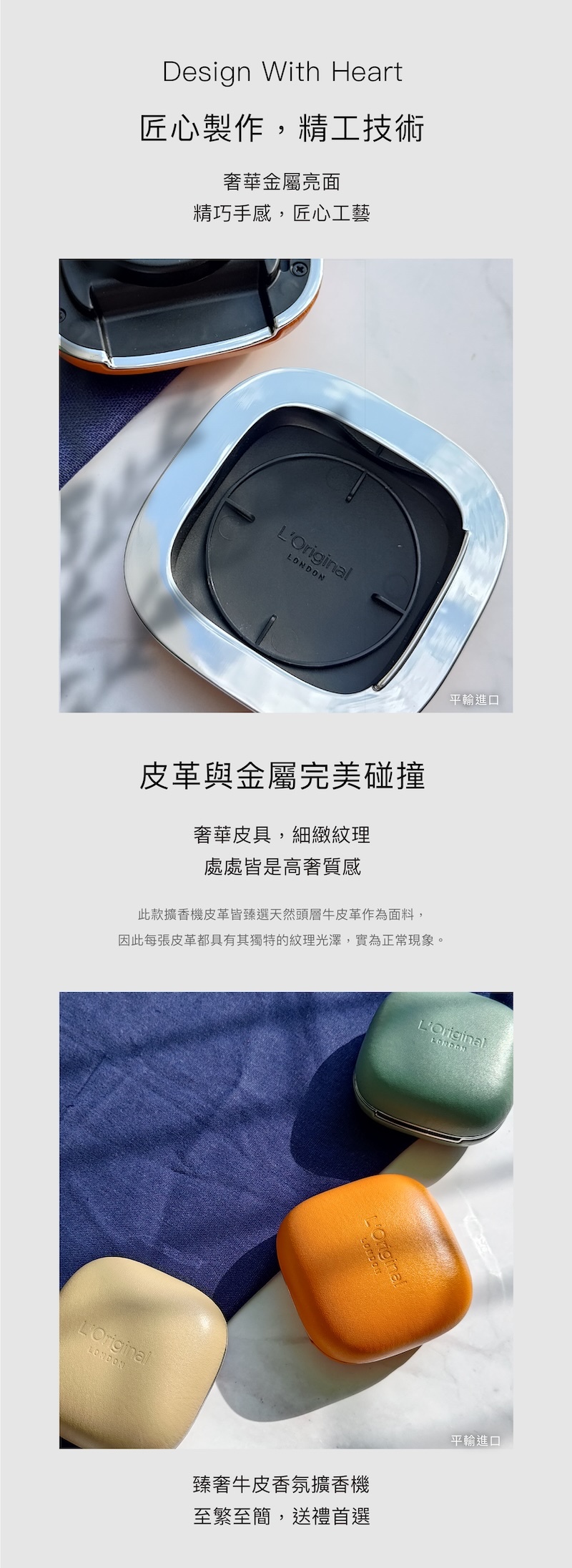 此款擴香機皮革皆臻選天然頭層牛皮革作為面料,因此每張皮革都具有其獨特的紋理光澤,實為正常現象。