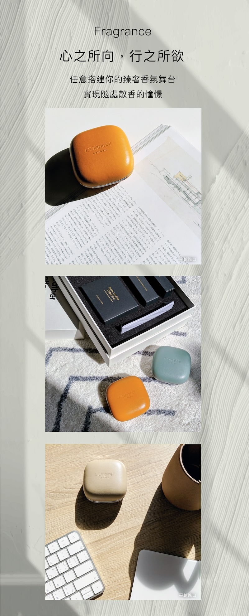 此款擴香機皮革皆臻選天然頭層牛皮革作為面料,因此每張皮革都具有其獨特的紋理光澤,實為正常現象。
