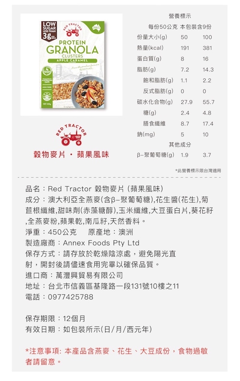 ◆低糖烘烤堅果穀物燕麥片(蘋果焦糖):2026/5/28