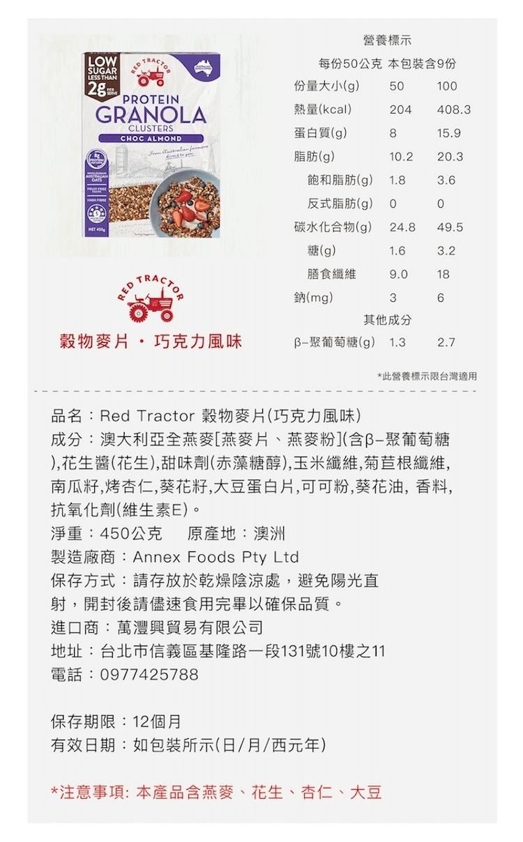 ◆低糖烘烤堅果穀物燕麥片(巧克力杏仁):2026/8/25