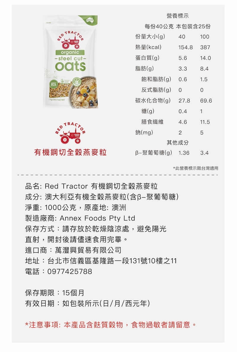 📣純淨優質澳洲有機鋼切麥片,保留全穀營養本真。